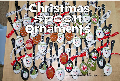 Some of my favorite Christmas ornaments to create are altered and handpainted spoons! They're pretty quick and easy, and I found they go faster if you do a whole bunch at once. And I can hardly do just one of anything, so it's a win-win. Here's a few I've done...