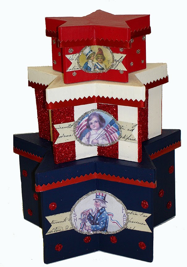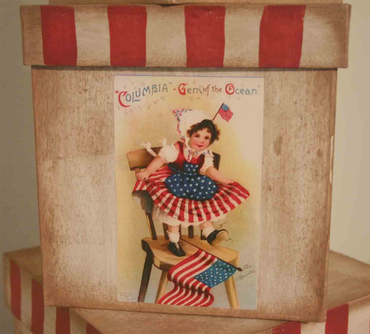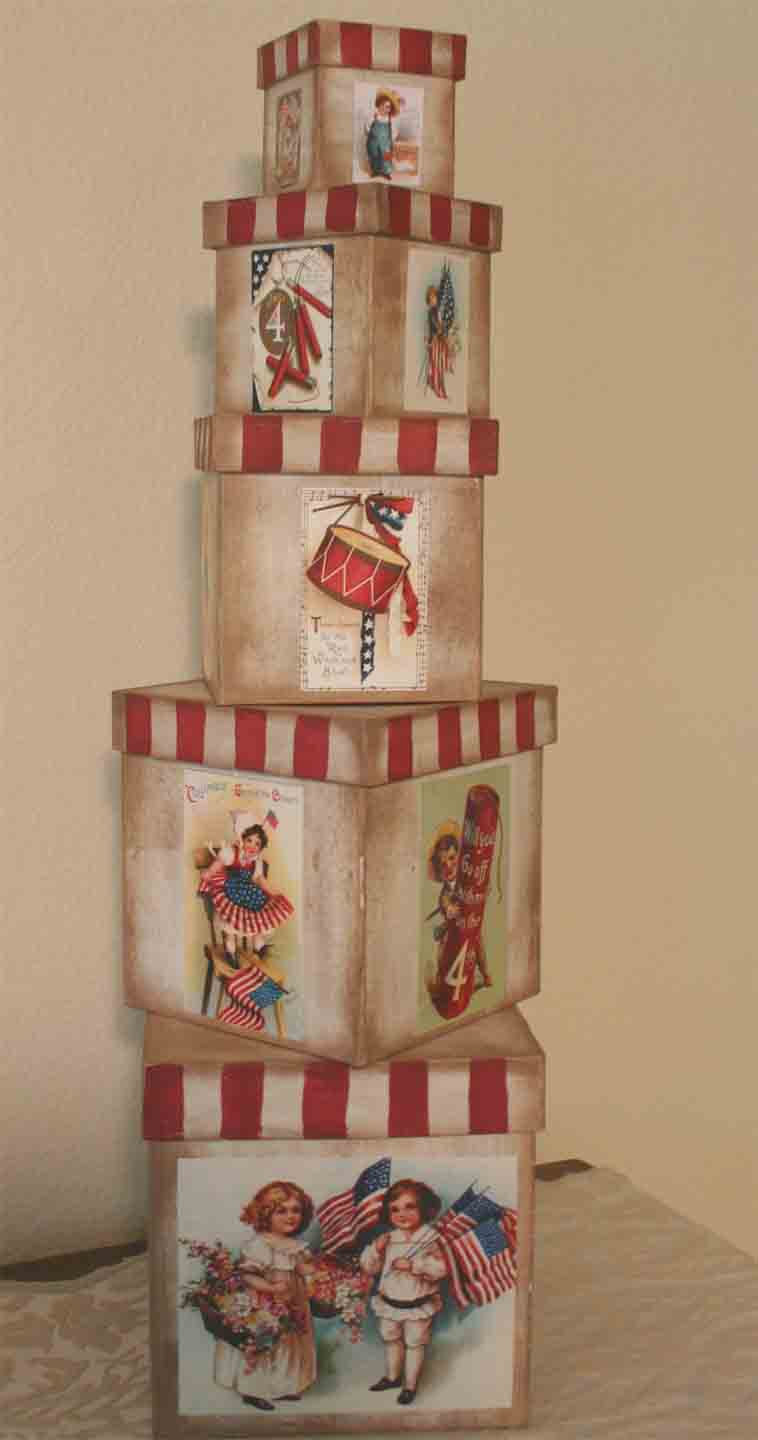 I found some great inspiration at the Traditions Year Round Holiday Store including these patriotic nesting boxes...