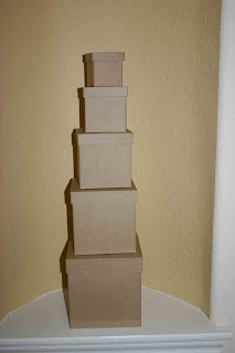 I've been wanting to create my own set, so not long after I found my inspiration pics, I set out to do just that. I purchased a set of paper mache nesting boxes that started out like this...