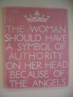 I heard this verse in church the other day and immediately thought of a tiara or crown. It is from I Corinthians 11:10 and reads, "The woman should have a symbol of authority on her head because of the angels."
