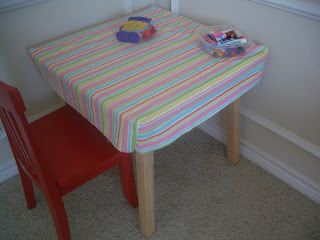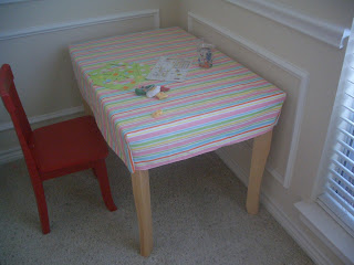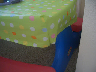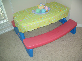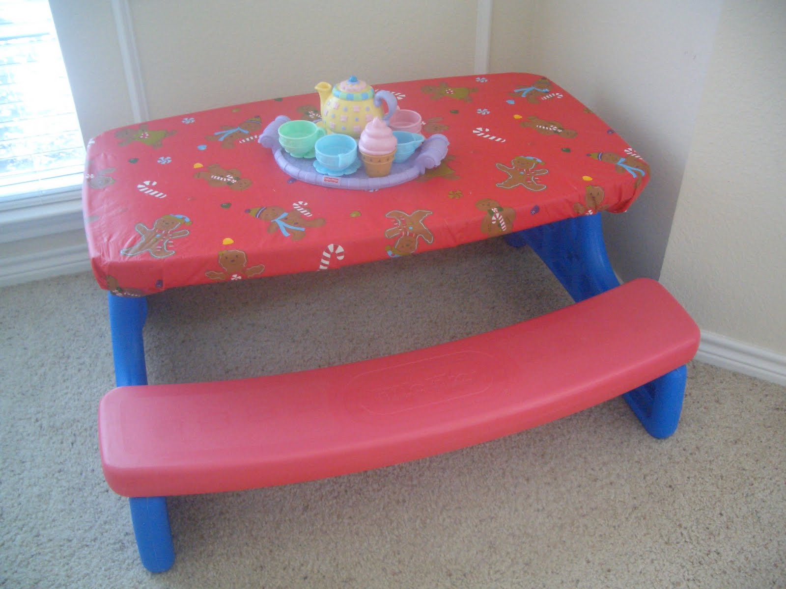 Yes, it is July and here is my kids indoor picnic table with a Christmas tablecloth (taped underneath with black duct tape). No hurry, huh?