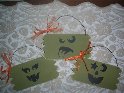 The patterned pumpkins were painted on a large unfinished cabinet door.