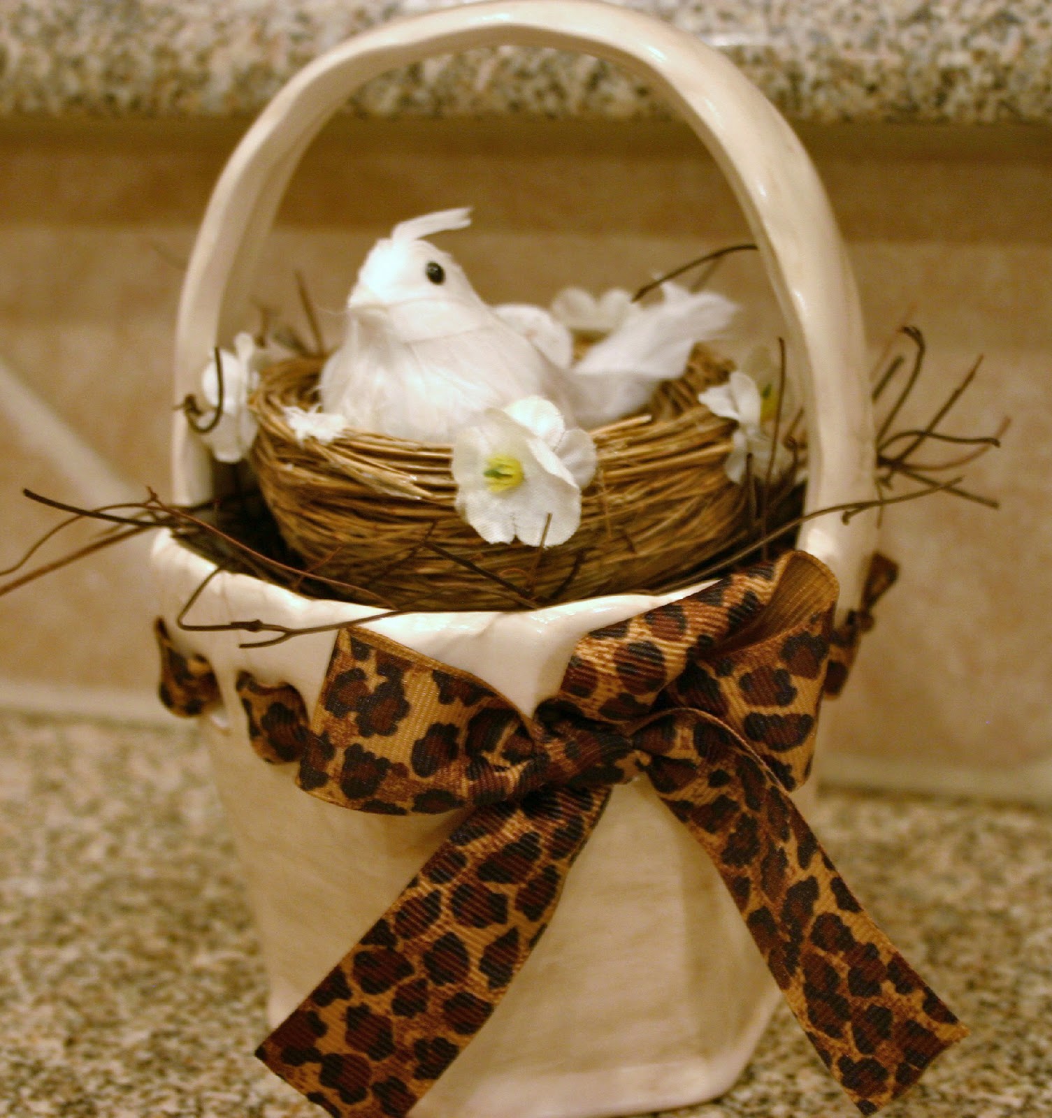 This brown and white polka dot ribbon gives the basket a whole new personality, don’t ya think?